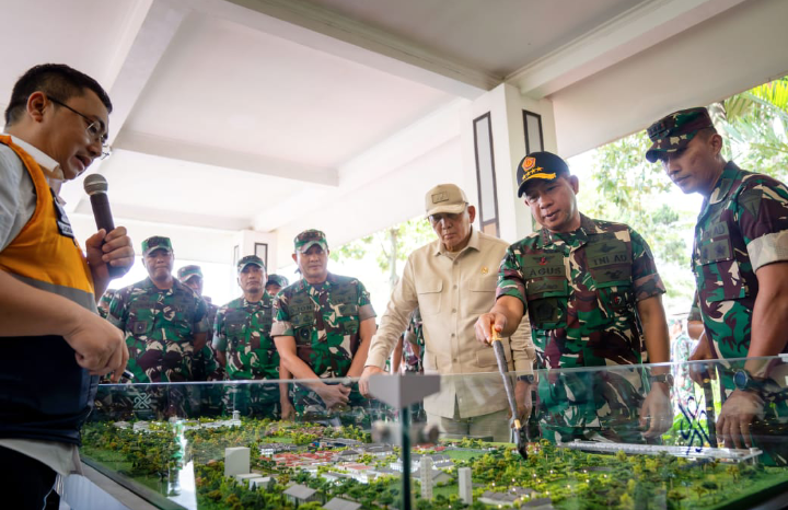 Turut hadir dalam peninjauan tersebut, Sekjen Kemhan, Irjen Kemhan, Kabaranahan Kemhan, dan Danjen Kopassus. (Dispenad)*