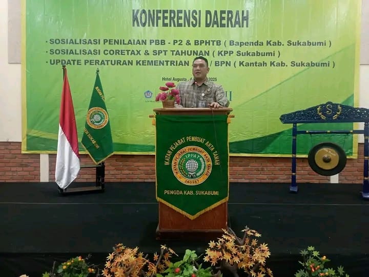 WARTAPOLRI.COM,SUKABUMI-Kepala Badan Pendapatan Daerah (Bapenda) Kabupaten Sukabumi Herdy Somantri, Memberikan sambutan sekaligus membuka Konferensi Daerah Pengurus Ikatan Pejabat Pembuat Akta Tanah (Ippat) Tingkat Kabupaten Sukabumi.