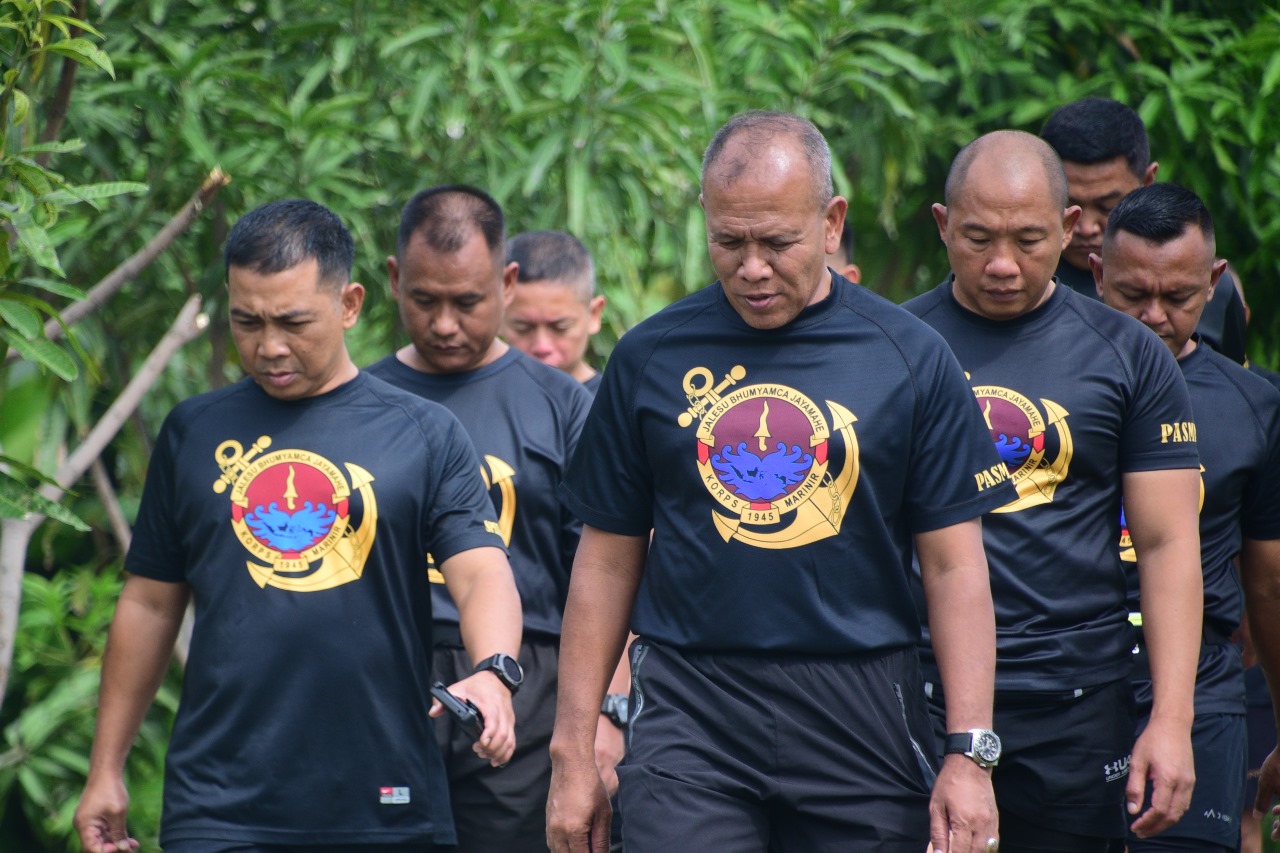 Meskipun tengah berada di bulan puasa, para Pejabat Utama Pasmar 1 tetap menjaga kondisi fisik tubuh dengan rutin melaksanakan olahraga pagi. Kali ini olahraga pagi diisi dengan jalan kaki mengelilingi Kesatrian Marinir Baroto Sardadi Marunda.