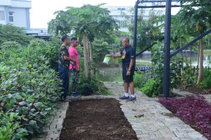 Di sela-sela melaksanakan olahraga pagi, Danpasmar 1 bersama para Pejabat Utama Pasmar 1 juga meninjau lahan ketahanan pangan yang dikelola oleh prajurit dari Satuan Denma Pasmar 1 dan Menart 1 Marinir.