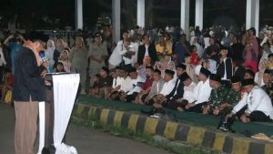 WARTAPOLRI.COM, SUKABUMI-Bupati Sukabumi H Asep Japar membuka acara Gema Takbir Sukabumi Mubarakah 1446 H/2025 M di Alun-alun Palabuhanratu, Minggu (30/3/2025). Acara yang bertajuk “Mukul Bedug Serentak Se-Kabupaten Sukabumi” tersebut diikuti oleh 47 kecamatan secara virtual.