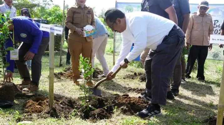 WARTAPOLRI.COM,SUKABUMI–Bupati Sukabumi H. Asep Japar menanam pohon di kawasan Bukit Kurma Baruajol, Desa Sudajaya Girang, Kecamatan Sukabumi, Selasa, 22 April 2025. Penanaman pohon tersebut