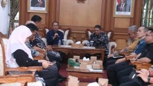 WARTAPOLRI.COM,SUKABUMI–Komandan Pangkalan TNI Angkatan Laut (Danlanal) Bandung, Kolonel Laut (P) Muhamad Taufik melakukan kunjungan kerja ke Kabupaten Sukabumi dan disambut langsung oleh Sekretaris Daerah Kabupaten Sukabumi, H Ade Suryaman serta unsur Forkopimda dan Camat Palabuhanratu, di Pendopo Palabuhanratu, Kamis (8/5/2025).