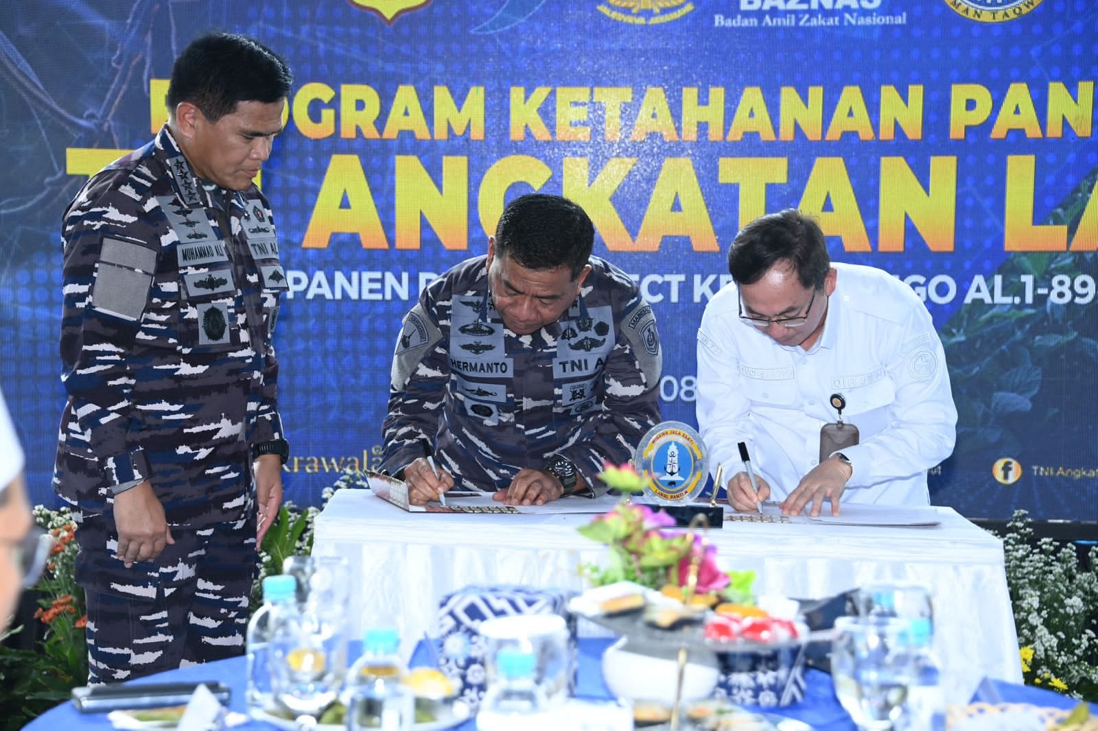 Kegiatan diawali dengan penandatangan PKS TNI AL dengan Kementan yang dilanjutkan dengan launching pupuk jangkar, kemudian giat pemberian sembako kepada para petani, vicon dengan jajaran dan simbolis panen pilot project kedelai Miho AL1-89.