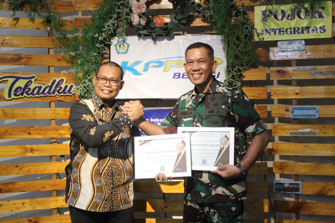 Piagam penghargaan diserahkan langsung oleh Kepala KPPN Bekasi Bapak Haris Budi Susila, kepada Kepala Staf Korem 051/Wkt (Kasrem) Kolonel Inf Donald Erickson Silitonga, S.I.P., M.Si., didampingi oleh Kasi Ren Korem 051/Wkt Kolonel inf Gandung Eko Prabowo, S.I.P, Prestasi ini menjadi bukti komitmen dan dedikasi Korem 051/Wkt dalam pengelolaan anggaran dan pelaksanaan tugas dengan baik.