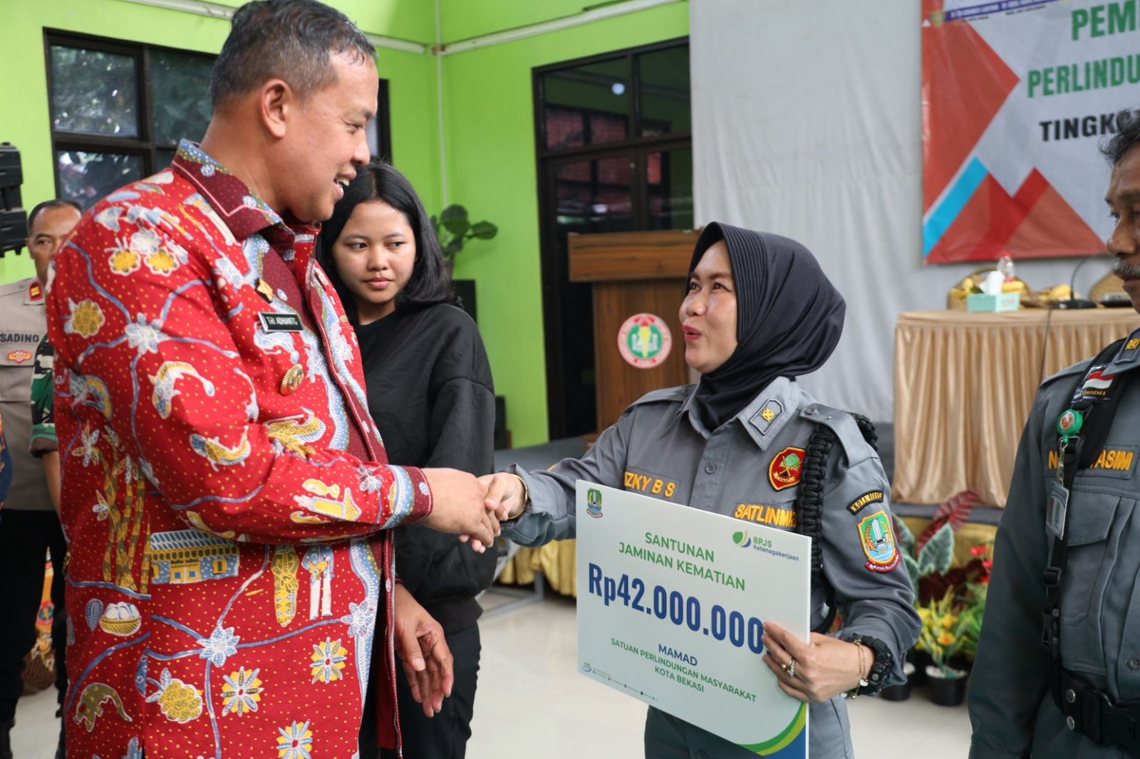 Sebagai bagian dari penghargaan atas dedikasi Linmas, dalam acara tersebut juga dilakukan penyerahan simbolis santunan dari BPJS Ketenagakerjaan kepada keluarga anggota Linmas yang telah meninggal dunia.