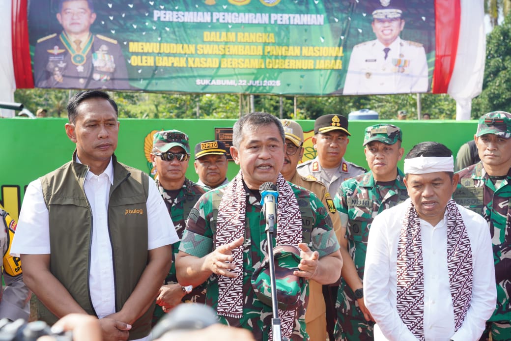 WARTAPOLRI.COM, SUKABUMI-Sebagai bentuk nyata pengabdian kepada rakyat, TNI AD menghadirkan sarana pengairan baru yang menghidupkan kembali lahan tadah hujan di Kecamatan Ciracap, Sukabumi, Jawa Barat (Jabar). Sarana yang diresmikan langsung oleh Kepala Staf Angkatan Darat (Kasad) Jenderal TNI Maruli Simanjuntak, M.Sc., pada Selasa (22/7/2025) ini, mampu mengairi hingga 424 hektar sawah warga setempat.