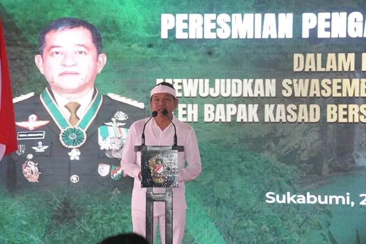 WARTAPOLRI.COM,SUKABUMI–Bupati Sukabumi H Asep Japar mendampingi Kepala Staf Angkatan Darat (KSAD) Jenderal TNI Maruli Simanjuntak dan Gubernur Jawa Barat Dedi Mulyadi meresmikan sistem pengairan pertanian di Desa Pangumbahan, Kecamatan Ciracap, Kabupaten Sukabumi, Selasa (22/7/2025).