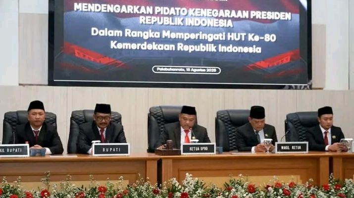 WARTAPOLRI.COM,SUKABUMI–Pemerintah Kabupaten Sukabumi bersama DPRD mendengarkan pidato kenegaraan Presiden Republik Indonesia Prabowo Subianto dalam rangka peringatan HUT ke-80 Kemerdekaan RI. Pidato tersebut disaksikan melalui