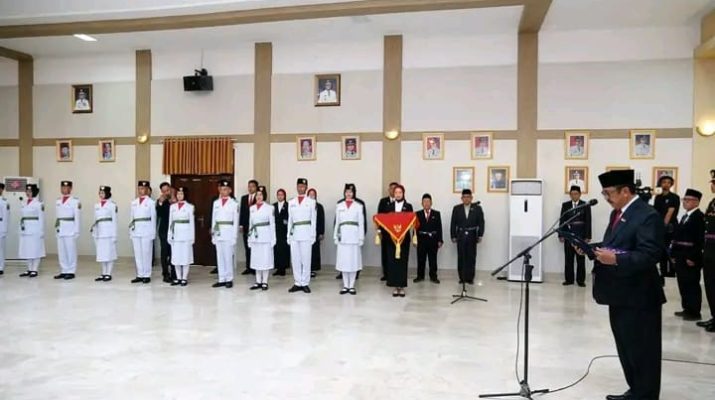 WARTAPOLRI.COM,SUKABUMI–Menjelang peringatan Hari Ulang Tahun (HUT) ke-80 Kemerdekaan Republik Indonesia, Bupati Sukabumi H Asep Japar resmi mengukuhkan 32 anggota Pasukan Pengibar Bendera Pusaka (Paskibraka)