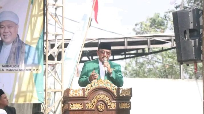 Acara dilanjutkan dengan ceramah yang disampaikan ketua PC NU Kabupaten Sukabumi KH E.S Mubarok