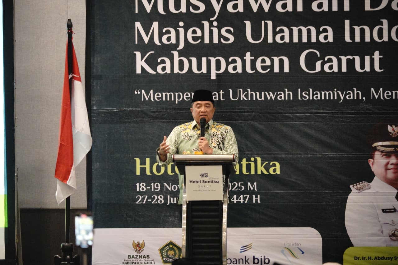 GARUT, WartaPolri. Com– Bupati Garut, Abdusy Syakur Amin, membuka secara resmi Musyawarah Daerah (Musda) XI Majelis Ulama Indonesia (MUI) Kabupaten Garut Tahun 2025 yang berlangsung di Grand Ballroom Hotel Santika Garut, Jalan Cipanas Baru, Kecamatan Tarogong Kaler, Selasa (18/11/2025).