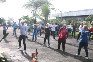 ” Karena itu pelaksanaan senam KORPRI dan pertandingan Olahraga hari ini menjadi sarana penting untuk meningkatkan kebugaran, mempererat kekeluargaan serta menumbuhkan kedisplinan dan semangat kerja yang lebih baik” ungkapnya.