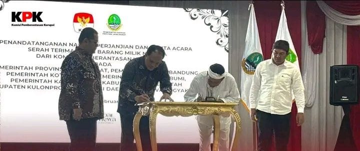 Serah terima hibah Barang Milik Negara (BMN) ini, dilakukan melalui penandatanganan perjanjian oleh Direktur Labuksi KPK, Mungki Hadipratikto dan Gubernur Jawa Barat, Dedi Mulyadi.